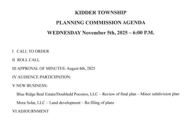 The next Meeting will be held Wednesday, November 5, 2025 at 6:00 p.m. (Agenda Below)